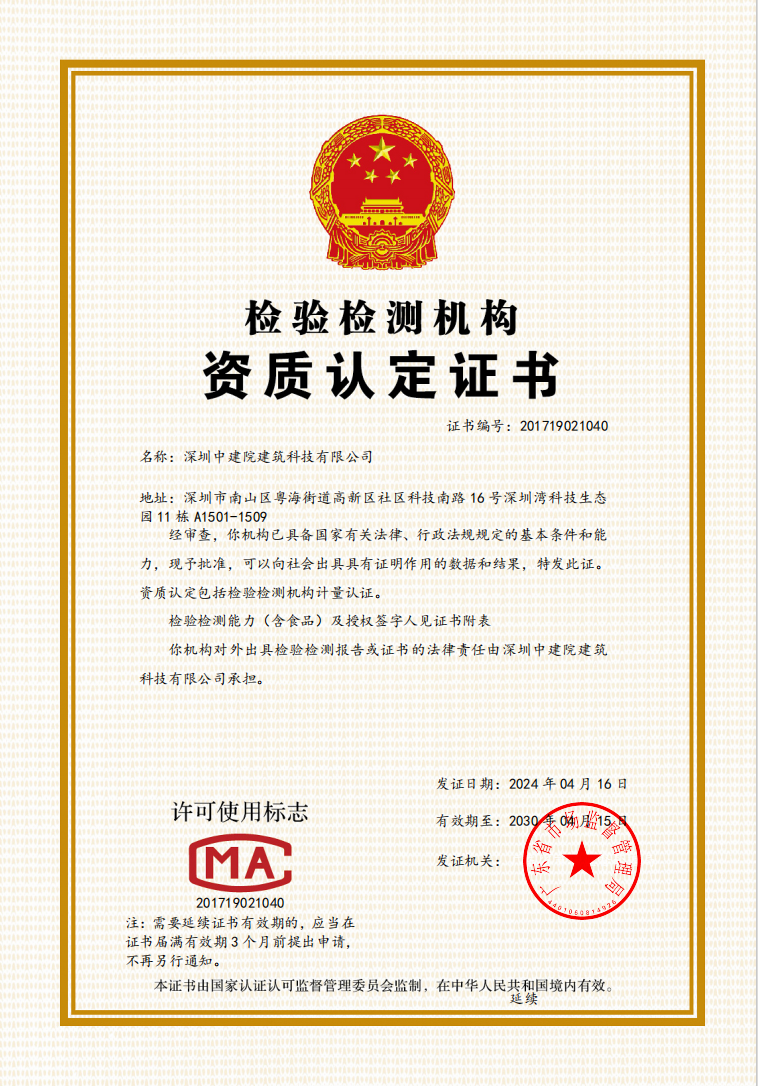 深圳中建院綜合檢測實(shí)驗(yàn)室建設(shè)工作進(jìn)展順利,建筑節(jié)能、綠色建筑新增項(xiàng)目已取得CNAS 、CMA資質(zhì)擴(kuò)項(xiàng)證書,幕墻實(shí)驗(yàn)室已完成設(shè)備主體安裝工作,繼續(xù)進(jìn)行資質(zhì)能力建設(shè)及部分新增項(xiàng)目擴(kuò)項(xiàng)審核工作。