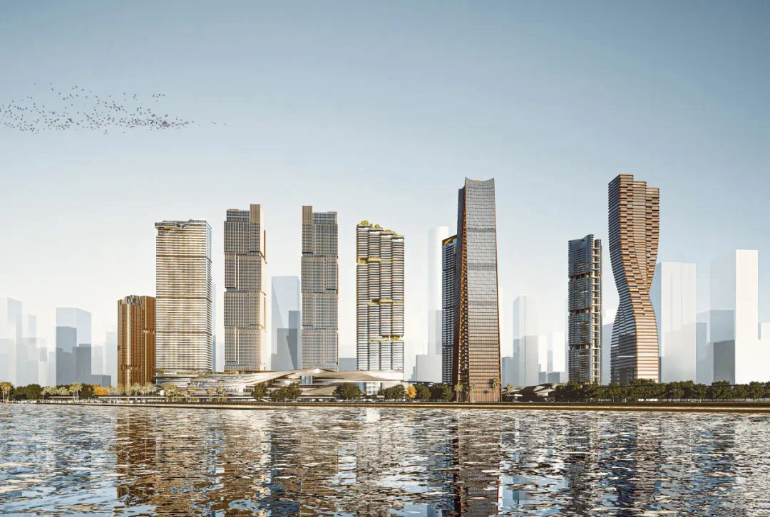 前海國際樞紐中心項目位于前海CBD桂灣片區的核心位置,作為深圳在建規模超大的樞紐TOD工程之一,用地面積達20公頃,未來將打造成集綜合交通樞紐、立體商業、甲級辦公、國際星級酒店、商務公寓于一體的超級樞紐城市綜合體。樞紐項目上蓋有9棟超高層建筑,其中T2為商務公寓,建筑高度約250米。T3和T4為雙子塔超甲級寫字樓,建筑高度近300米,其變化豐富的立面打造出獨特的綜合體建筑形象,因緊鄰前海灣,T3、T4寫字樓造型上還具有“水石相間”的含義,兩棟對稱的塔樓將成為該項目的亮點封面之一。