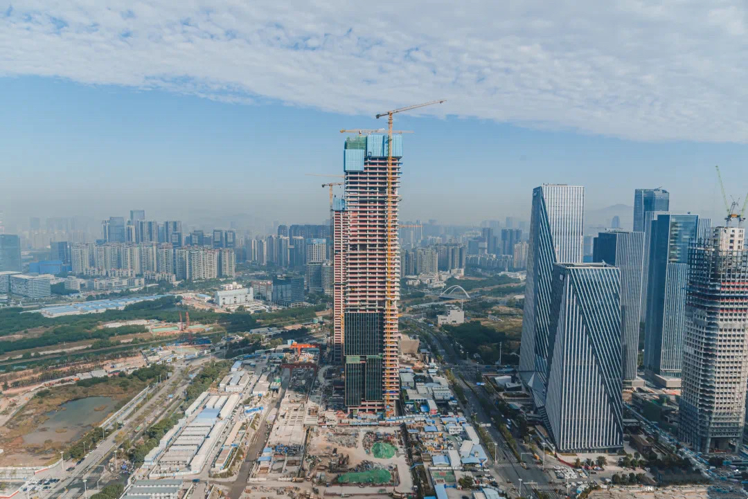 目前,前海國際樞紐中心項目正穩步建設中,樞紐上蓋的T2公寓主體結構已施工至59層,T4辦公樓主體結構已封頂,預計2024年即將入市。
