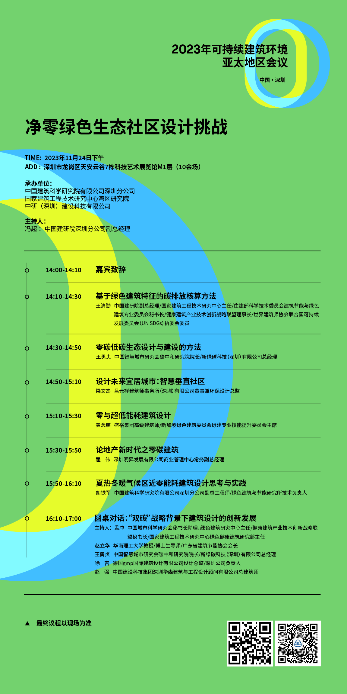 2023年可持續(xù)建筑環(huán)境亞太地區(qū)會議-“凈零綠色生態(tài)社區(qū)設(shè)計挑戰(zhàn)”主題論壇精彩預(yù)告