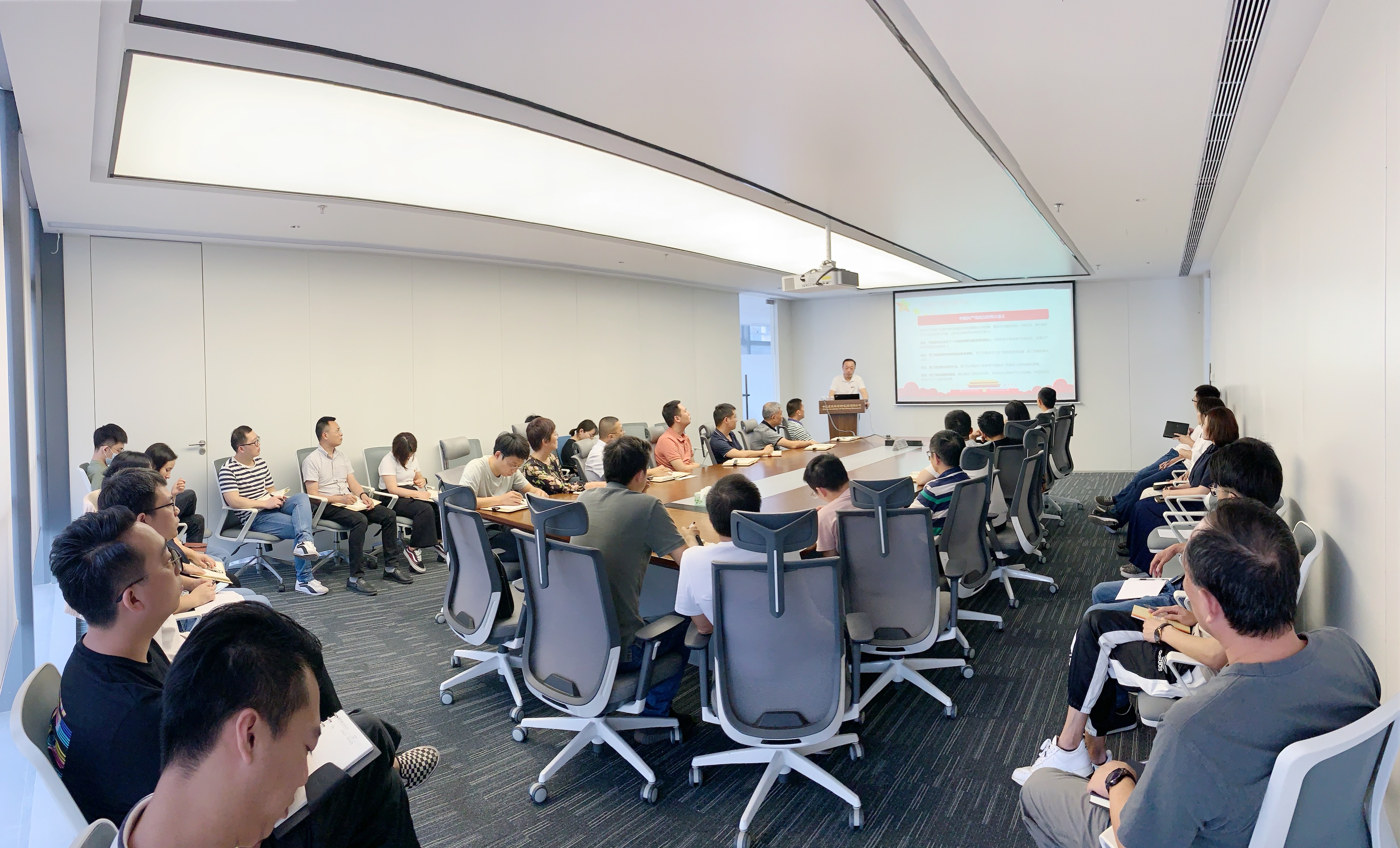 4月14日,深圳分公司黨總支開展黨史學習教育專題黨課,公司中層干部及全體黨員參加學習,公司黨總支書記何春凱為大家作專題輔導。
