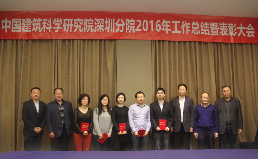 2017年1月12日,“中國建筑科學研究院深圳分院2016年工作總結暨表彰大會”在深圳召開。我院領導班子成員、各部門負責人、專業總工,以及我院2016年優秀經營管理者、先進工作者和優秀青年獲得者30余人參加了會議。總院王清勤副院長、人事處宋建農處長、工會戴奇主席和黨辦宋兆康同志應邀出席了會議。會議由我院黨總支書記、副院長何春凱主持。
