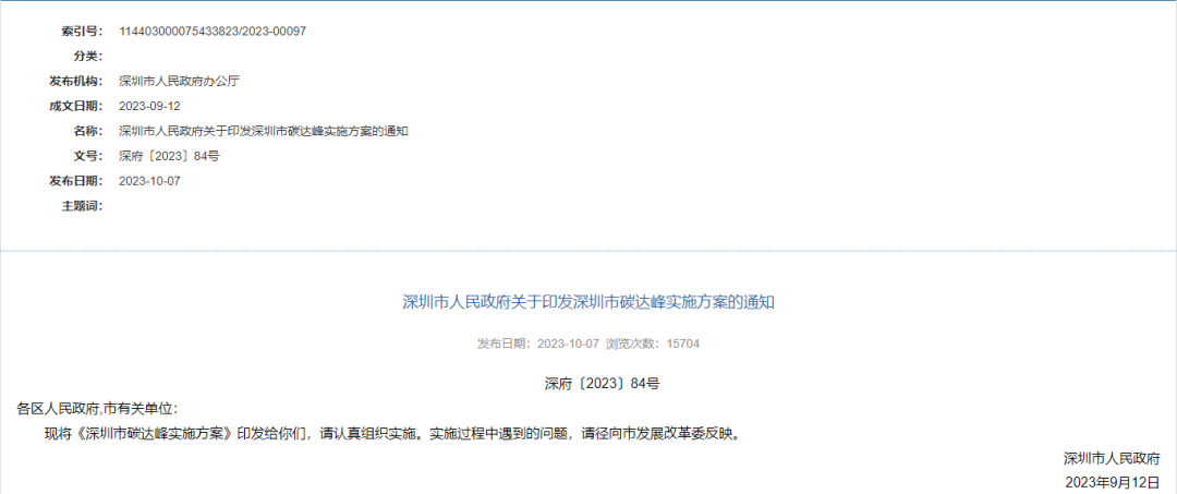 深圳市人民政府關(guān)于印發(fā)深圳市碳達(dá)峰實(shí)施方案的通知
