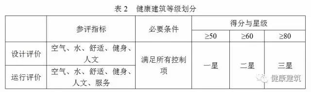 第3.2.8條規定了健康建筑的等級劃分。為使健康建筑的健康性能更為直觀的表現出來,《標準》對健康建筑的健康性能進行了等級劃分,詳見表2