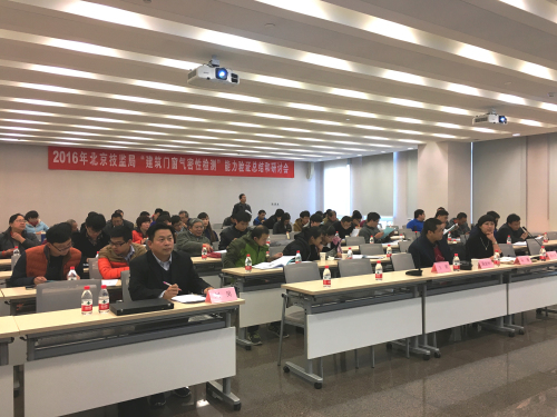 11月1日,由院檢測中心實施的2016年北京市質量技術監(jiān)督局“建筑門窗氣密性檢測能力驗證總結和研討會”在我院召開,北京市質量技術監(jiān)督局的周宏偉處長和中心王霓主任出席了本次會議,同時北京60家實驗室約100名從事門窗氣密檢測的檢測人員和管理人員參加。本次會議北京技監(jiān)局周處長介紹了有關監(jiān)管和能力驗證的政策,項目負責人昌文芳對本次能力驗證計劃進行了詳細的介紹,能力驗證部馬捷主任對實驗室應如何利用能力驗證結果進行指導、關鍵技術人員劉昊對建筑門窗氣密性能檢測的試驗原理及試驗要點進行了詳盡的分析。